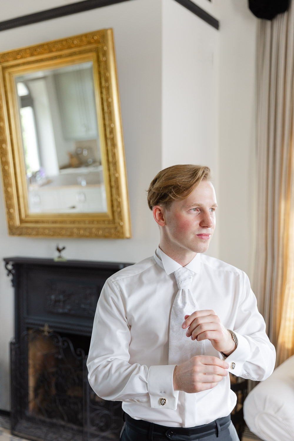 Sometimes the preparation location becomes too crowded with people or things. Therefore, we move these items to a more beautiful environment, where we subsequently photograph them. These moves can take some time. But as you can see in the photo above, our efforts bring beautiful wedding shots of details that have charm.