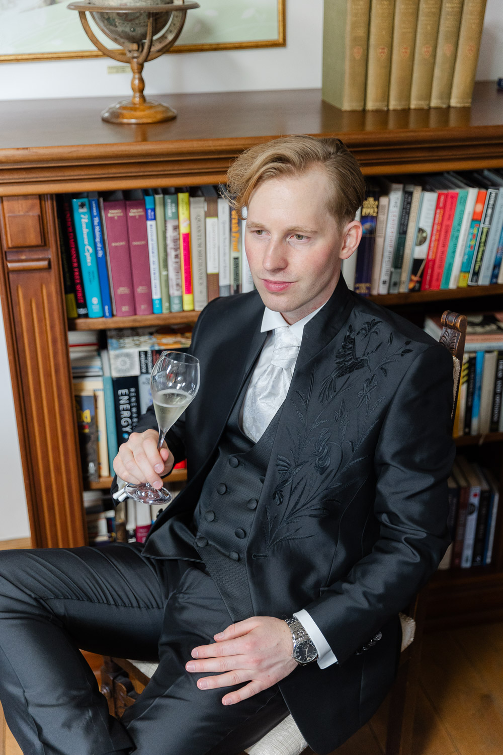 The first hour of photography is dedicated to the groom. Only then does the photographer move to the bride, with whom they also spend an hour. It is important that the bride is not more than a 15-minute journey away from the groom. Traveling during the wedding only increases the risk of delays or not being on time. If you have two photographers at the wedding, the main one focuses primarily on the bride, while the second one focuses on the groom and his family. In this case, more moments are captured as well.